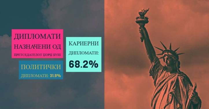 Моменталната законска рамка предвидува најмалку 1/3 од вупниот број на МК дипломати да бидат кариерни дипломати, а останатите да бидат назначени од редот на тн. политички дипломати. Со овие визуелизации сакаме да ја споредиме практиката во други држави и да ве поканиме да заземете став ЗА професионализација на нашата #МКДипломатија