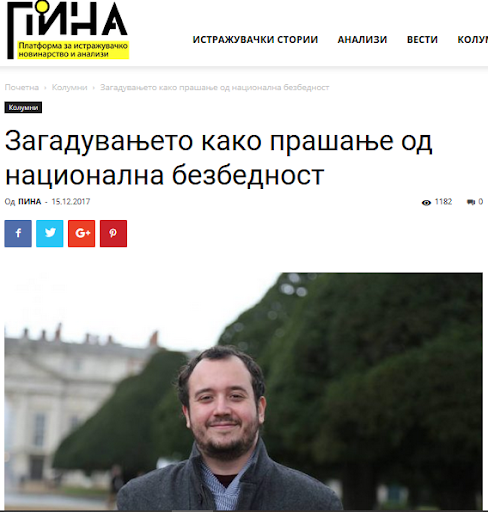 Back in 2017, Lazar Pop Ivanov wrote and published an article outlining the reasons why we should be treating air pollution as a national security threat. The article was published by www.pina.mk, in December 2017. The article is in Macedonian language and can be accessed on this link [click here]. The central points from this article have also been presented at the public event ‘Vizioniraj‘ that happened in Skopje in February 2018. The live stream from that presentation is available on this link.